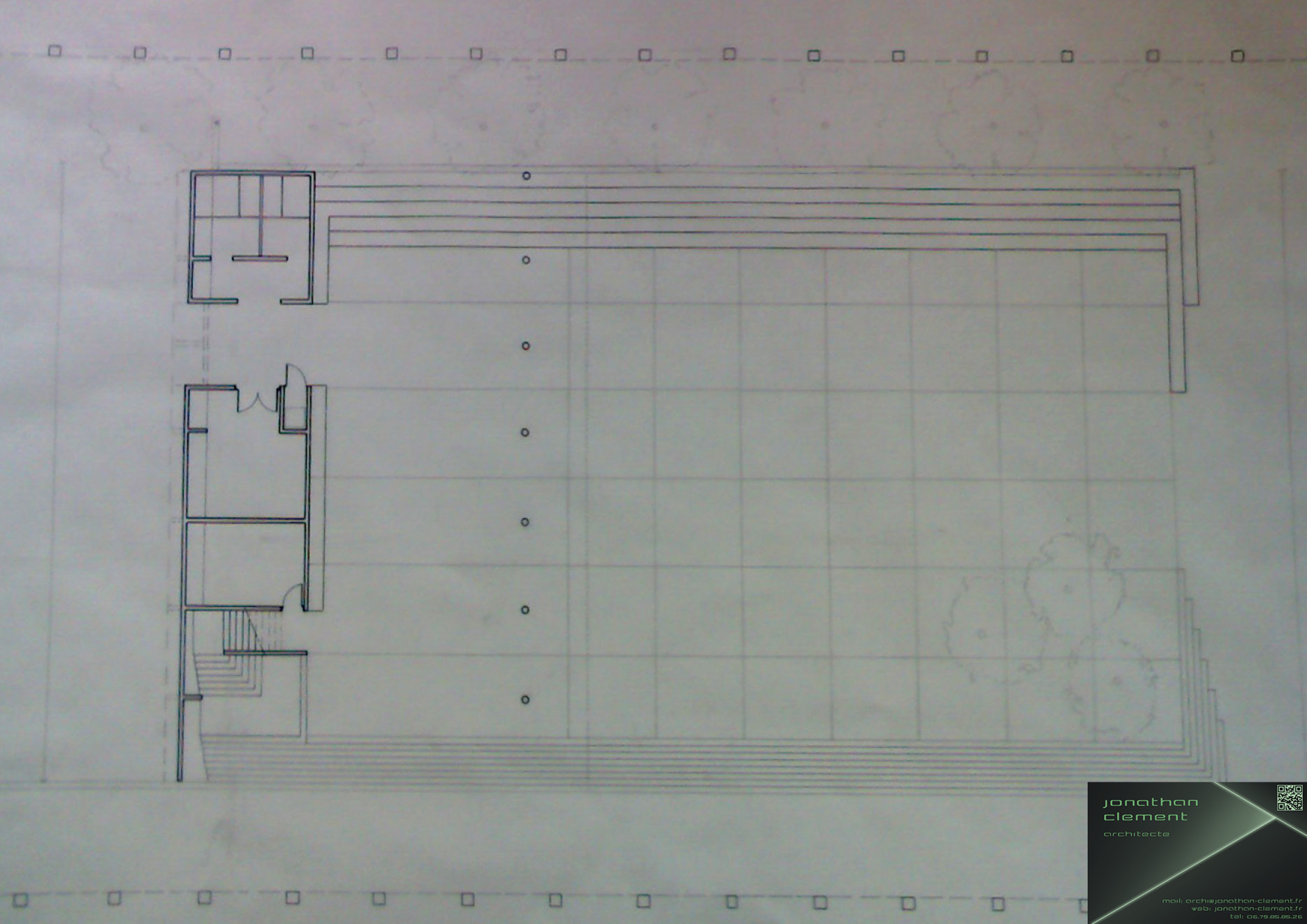 Ce projet fut entièrement dessiné à la main «Rotring ». Il aura nécessité l’élaboration de deux maquettes. La première, réalisée au 1/100 pour l’intégration dans le site, la seconde représentant une coupe technique avec mise en lumière réelle au 1/20. L’éclairage avait pour but de représenter tous les cas de figure de la mise en lumière de l’ouvrage.