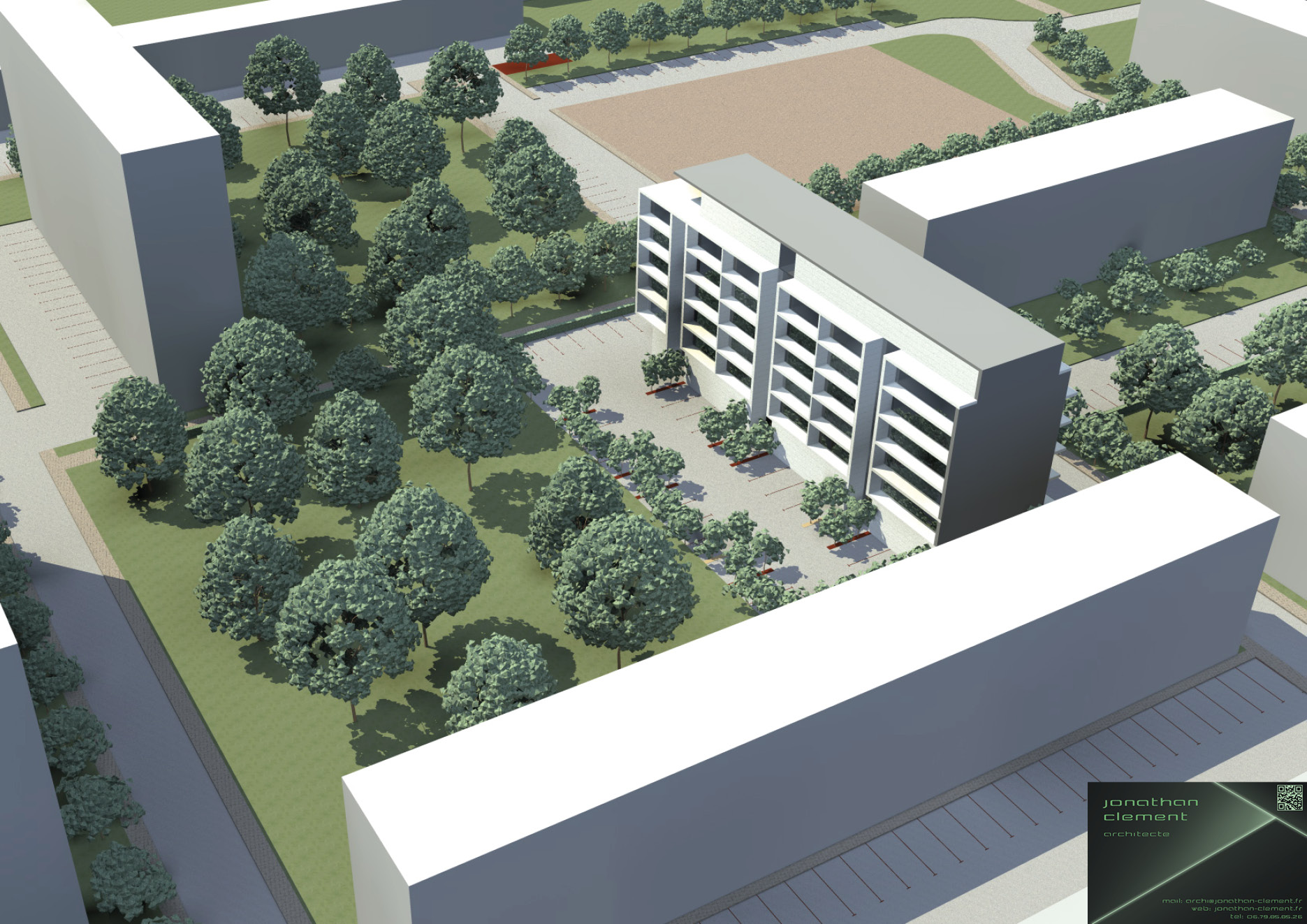A la suite d’une analyse urbaine de la ville de Valence dans la Drôme (26), le projet consistait à étudier les possibilités d’implantation d’un bâtiment de 42 logements collectifs. Cette étude avait un double objectif: définir une implantation en plan masse dans un découpage